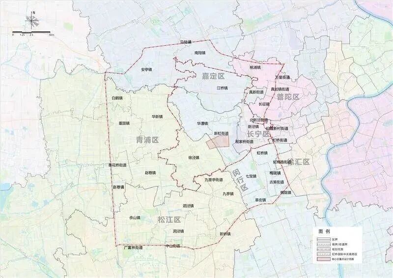 《专项规划》在虹桥商务区151平方公里范围的基础上,重点处理好虹桥商务区与中心城、三个新城的关系,规划范围扩展至535平方公里,着力将虹桥国际中央商务区和周边地区打造成为新时代国际开放门户枢纽发展示范区。