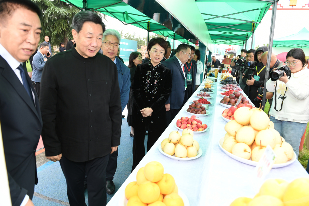 第四届后稷论坛中,领导、嘉宾们在展位参观
