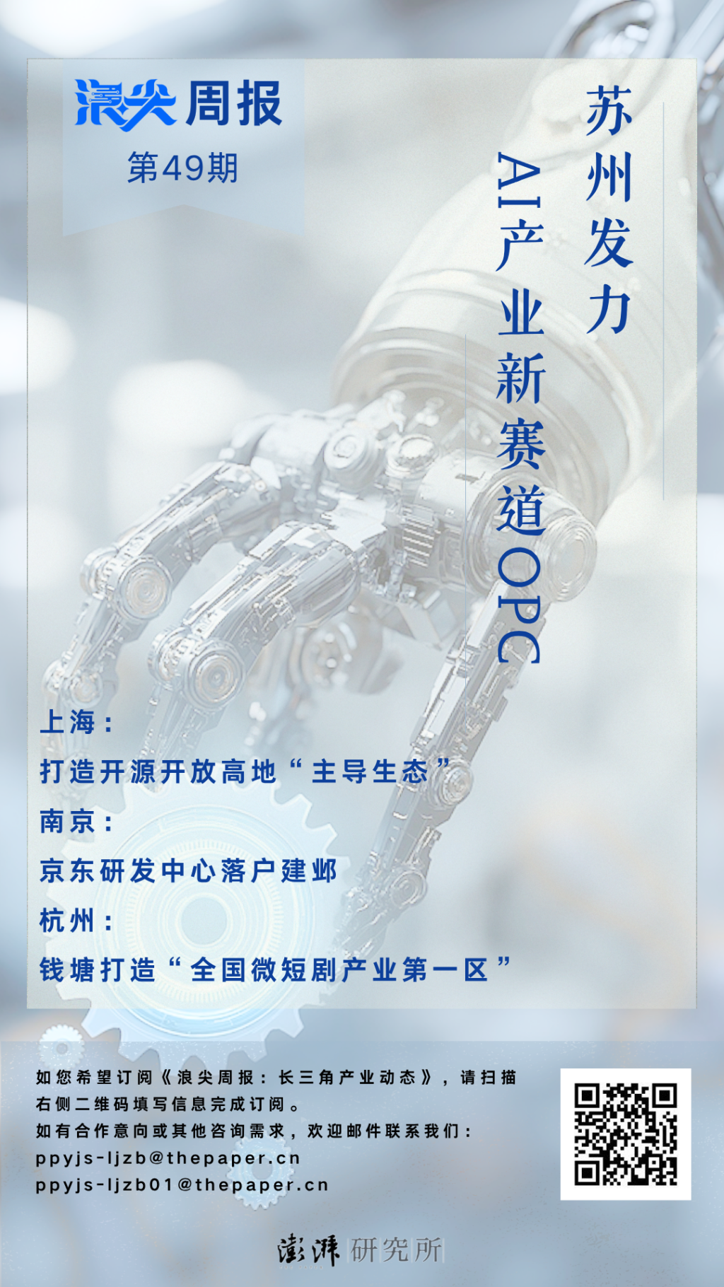 为促进长三角产业协作与科创协同,澎湃新闻旗下智库澎湃研究所推出“浪尖计划”。作为“浪尖计划”的子项目之一,《浪尖周报:长三角产业动态》聚焦长三角九大万亿GDP城市最新产业动态,精选115条9城主要报刊一周(2025年11月10日-2025年11月16日)的重要新闻与领导活动资讯,呈现产业政策动向与发展趋势。