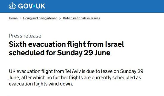正文 英国最后一架以色列撤侨航班将于周日起飞 海信证券 V管理员 /2025-06-28 01:40:03/128阅读/0评论 0628 英国政府表示,从以色列特拉维夫出发的撤离航班定于6月29日(周日)起飞,随着撤离航班逐步收尾,目前暂无后续航班安排。