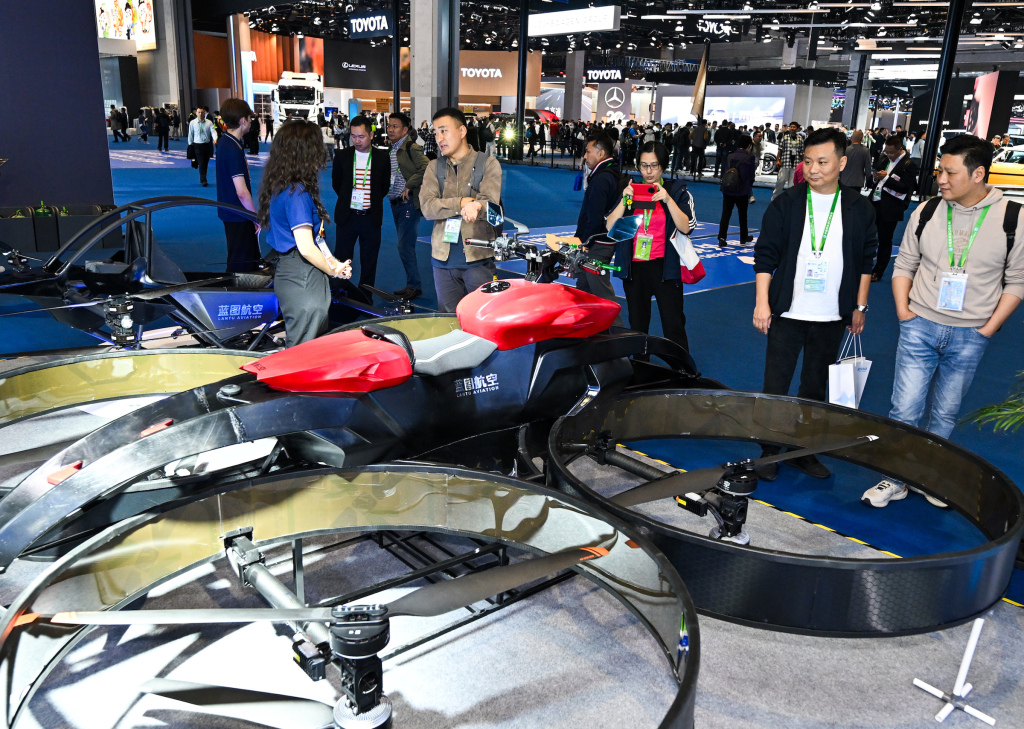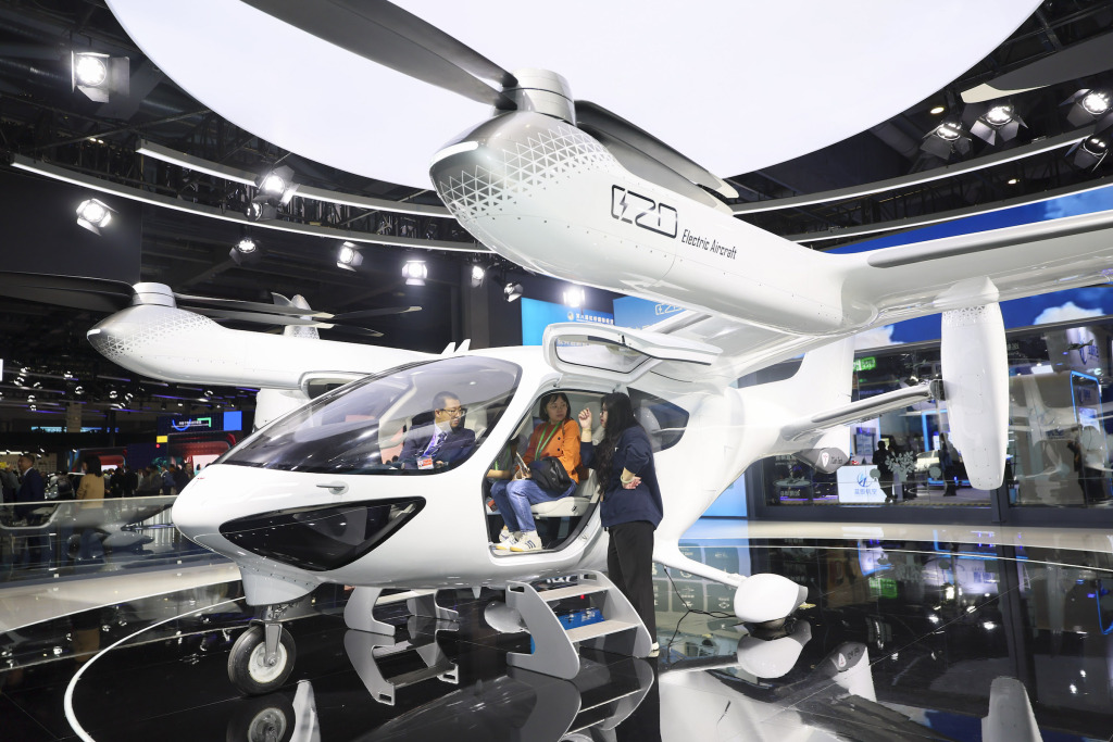 如果说智能驾驶还在重塑地面出行,那么低空出行展区则彻底打开了观众的想象空间。本届进博会上,多家企业带来了自主研发的电动垂直起降飞行器(eVTOL),俗称“空中出租车”,成为全场瞩目的焦点。