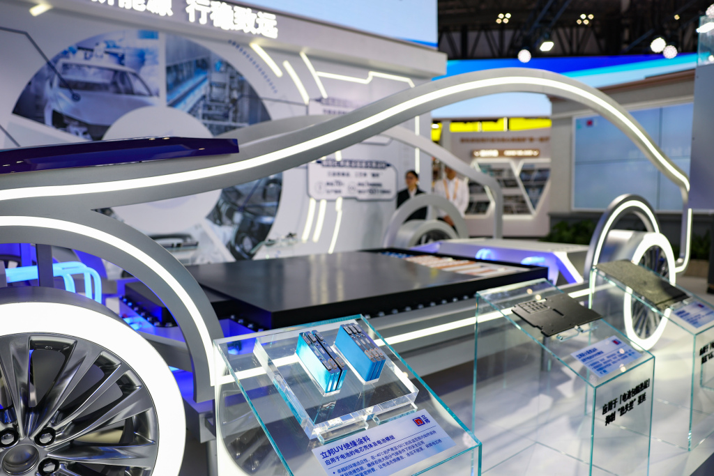 2025年11月6日,在进博会技术装备展区立邦展台拍摄的“新能源动力电池包涂装解决方案”展示。新华社记者 王泽聪 摄