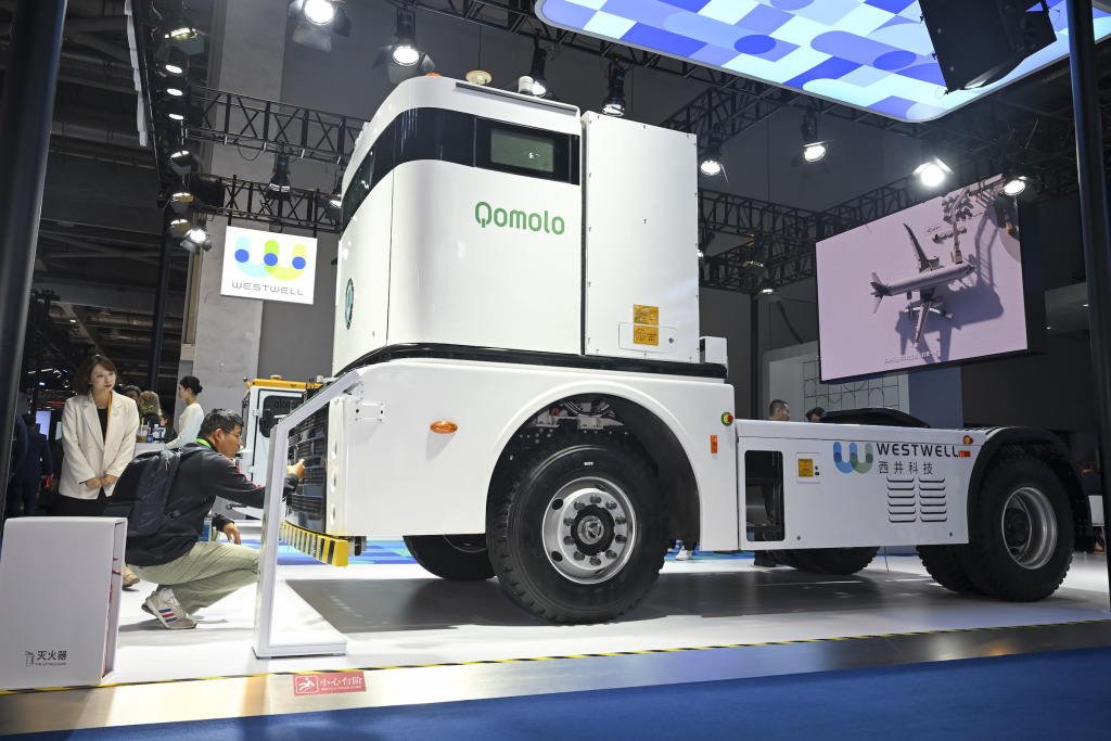 2025年11月6日,在第八届进博会汽车及智慧出行展区西井科技展台,Q-Truck全时无人驾驶集卡。新华社记者 陈浩明 摄