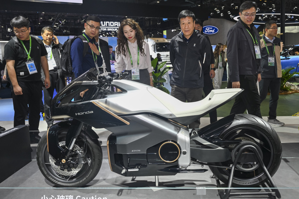2025年11月6日,在第八届进博会汽车及智慧出行展区本田(Honda)展台,本田全新电动概念摩托车。新华社记者 陈浩明 摄