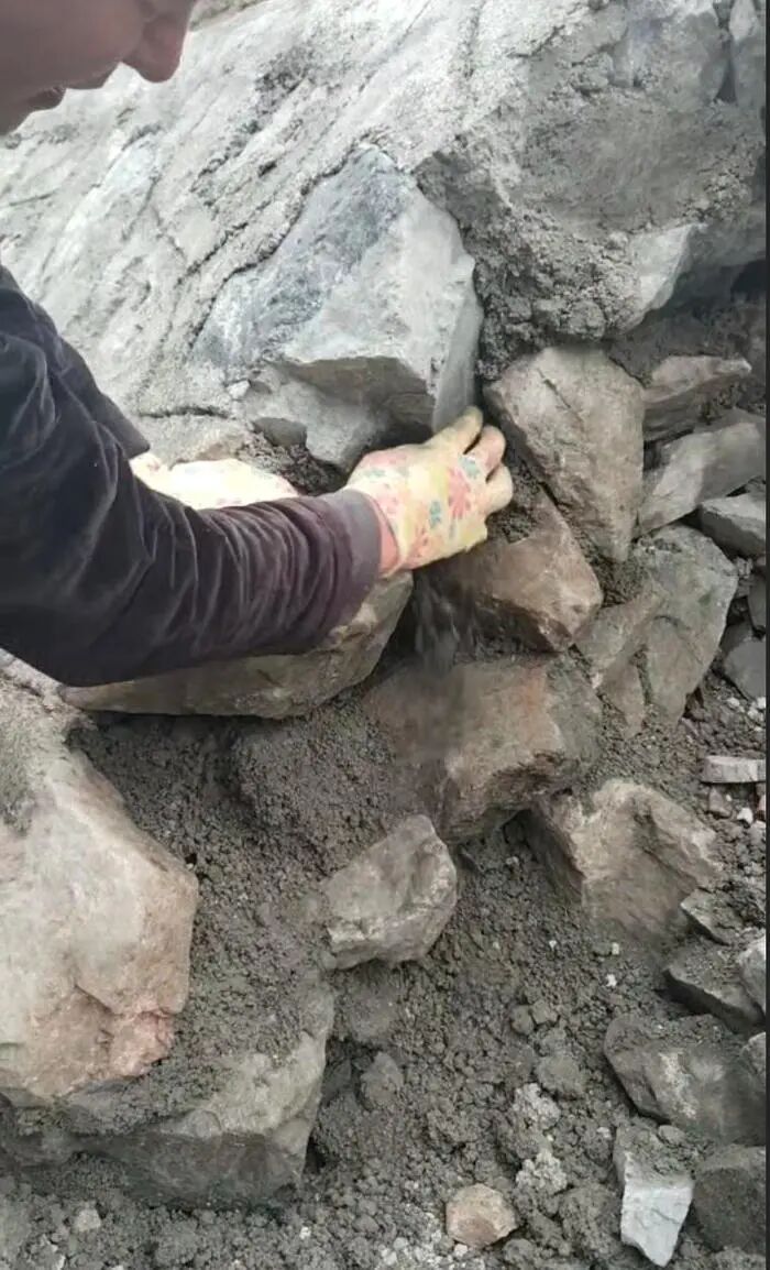 “这是水泥?还是豆腐渣?”村民王先生在视频中质疑护坡挡墙使用的水泥不合格,徒手就可以轻易掰断。另一段视频显示,护坡挡墙内填充石块可以轻易取出,填充的材料一捏就碎,还有部分空洞未填充。王先生在视频中还表示,已经有一块护坡挡墙被水冲塌。